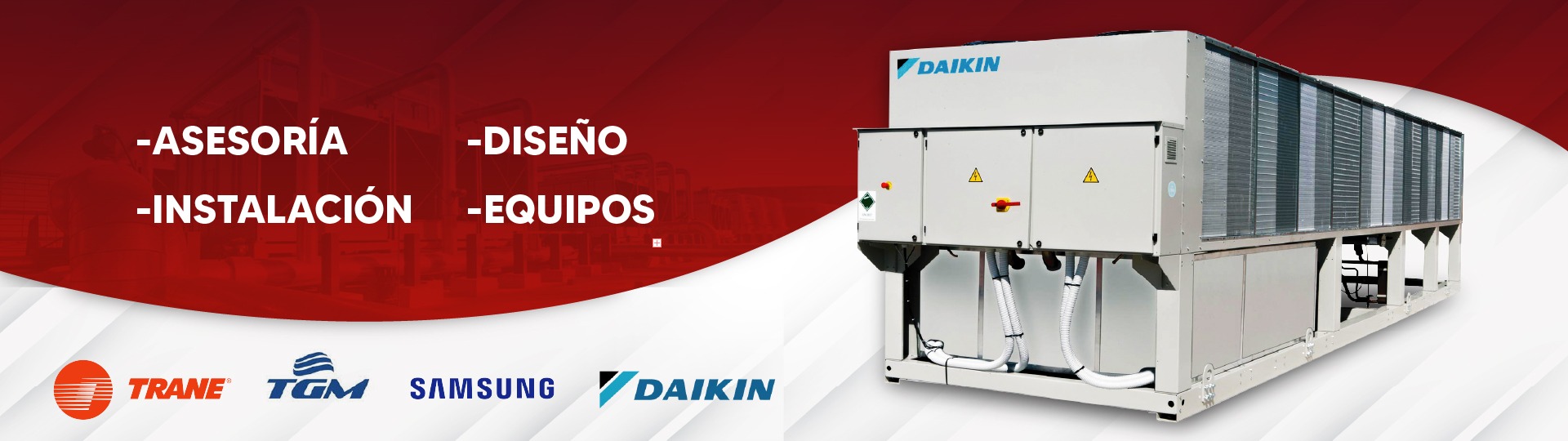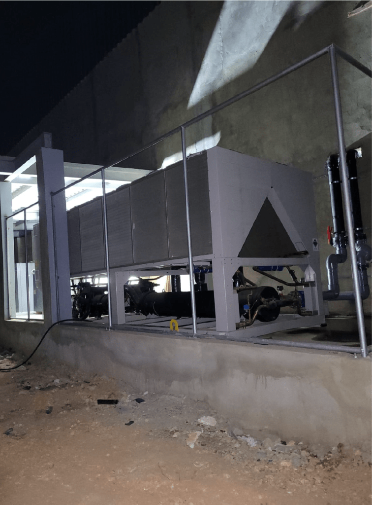 Suministro e instalación de Chiller Daikin de 300 toneladas, con suministro e instalación de la tubería de distribución de agua.