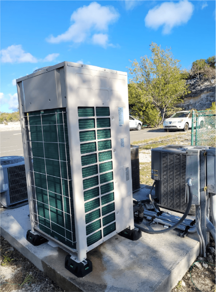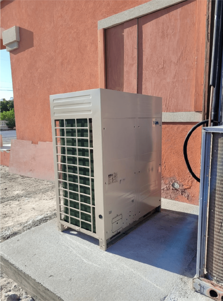 El proyecto implica el suministro e instalación de un sistema de aire acondicionado compuesto por tres unidades manejadoras de 5 toneladas cada una. Estas unidades cuentan con condensadores inverter de alta eficiencia (18 SEER), termostatos digitales para el control ambiental, ductos equipados con rejillas decorativas y un sistema de bombeo automático para drenar los condensados, lo que lo hace especialmente adecuado para entornos donde no hay drenajes disponibles para la descarga de los condensados de los equipos.